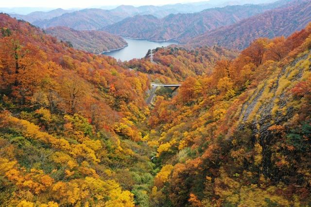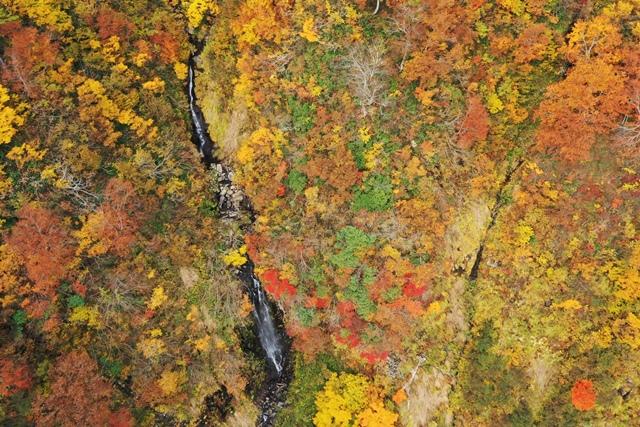 アイヨシの滝上空より、あいよしの沢の先に田子倉湖