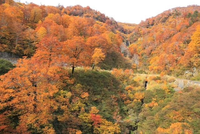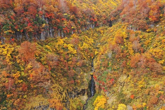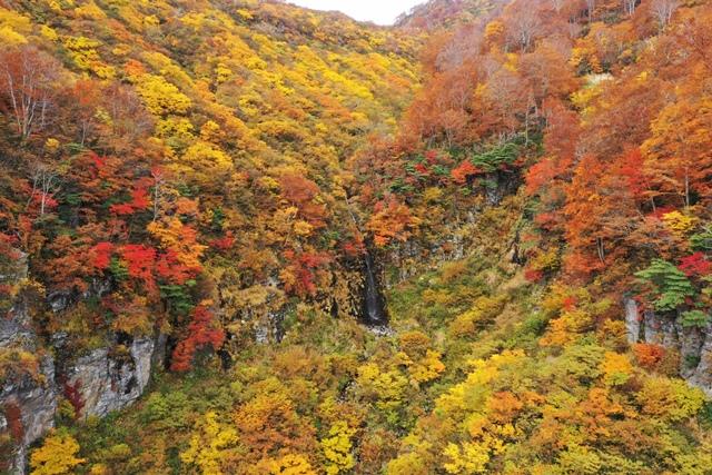 数色織りなす紅葉は、アバランチシュートの山肌を鮮やかに染め上げています♪