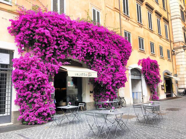 ・見どころ: 美しいブーゲンビリアのお花の入口とお店の雰囲気がよくマッチしているところ。写真にすると絵葉書みたい(”ローマの夏の思い出”というタイトル)