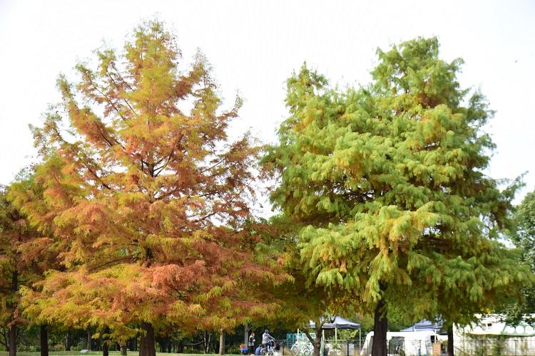 こんにちは。大阪特派員のかおりです。紅葉シーズン真っ只中の大阪です。大阪市にある花博記念公園鶴見緑地で秋を探しに行ってまいりました。花博記念公園鶴見緑地は1990年に開催された花の万博のメイン会場となったところで、年間を通してさまざまな花が咲き、イベントも多く行われています。春は桜、夏はヒマワリ、秋は紅葉が美しく、バラ園もあります。撮影日は2021年11月6日ですので、現在はもっと紅くなっていると思います。