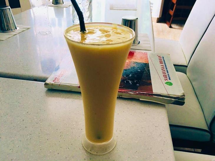 食後のドリンクに「マンゴーラッシー」(120バーツ)も注文しました。若干高めですが、とろっと濃厚な味でおいしく満足でした。