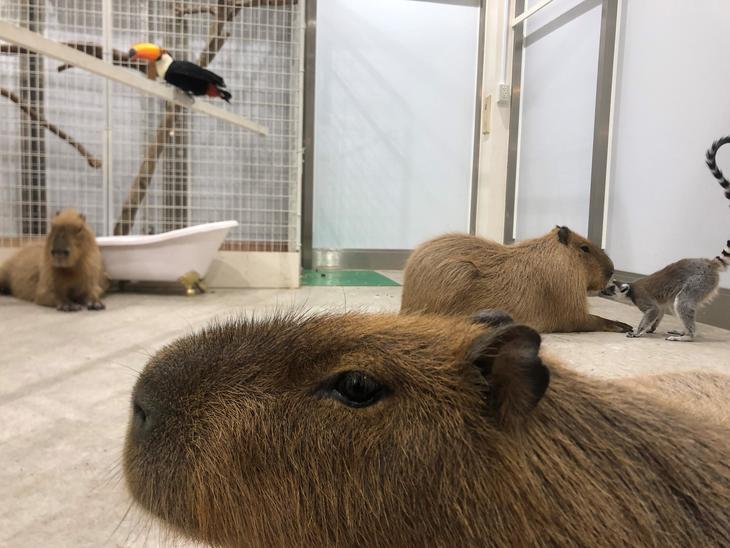 先月3つ子の赤ちゃんも誕生したというカピバラ。