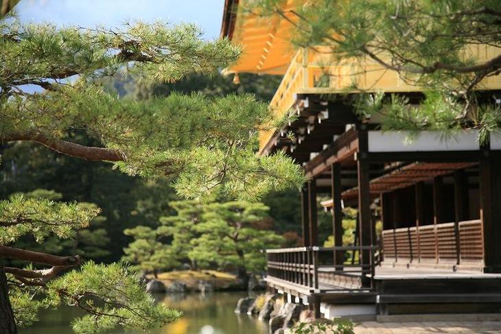 金閣寺は、室町幕府三代将軍義満が、権力と財力を尽くして建てた寺院で、建物の第一層は藤原時代の寝殿造り、第二層は鎌倉時代の書院造り、第三層は禅宗仏殿造りと独特の建築様式です。