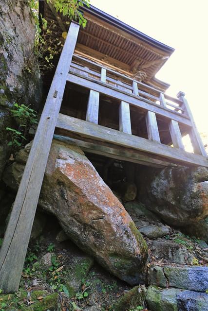 神社建築としては県内でも他に例がないとされる「懸造り」の社殿が最大の特徴です。