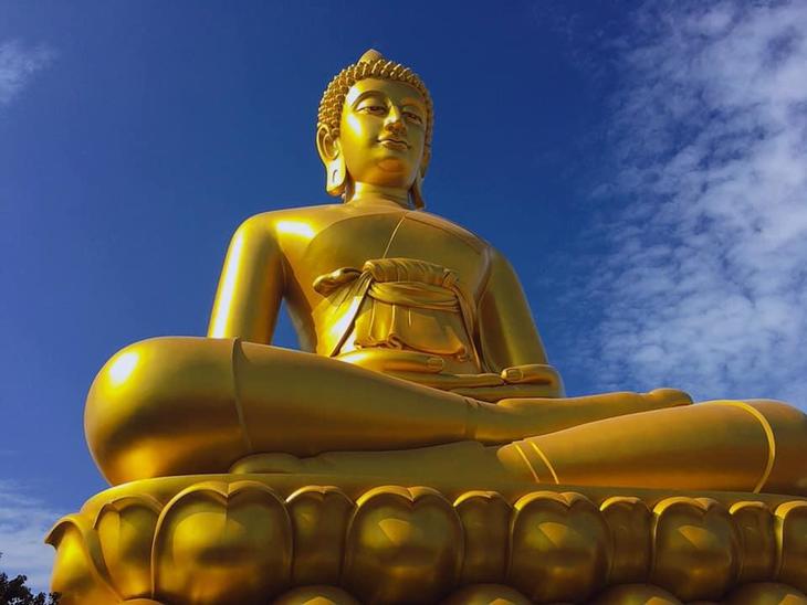 「ワット・パクナム」に到着すると、目の前には黄金に輝く美しい仏像がドデーンとあらわれ、その存在感と迫力に圧倒されます。