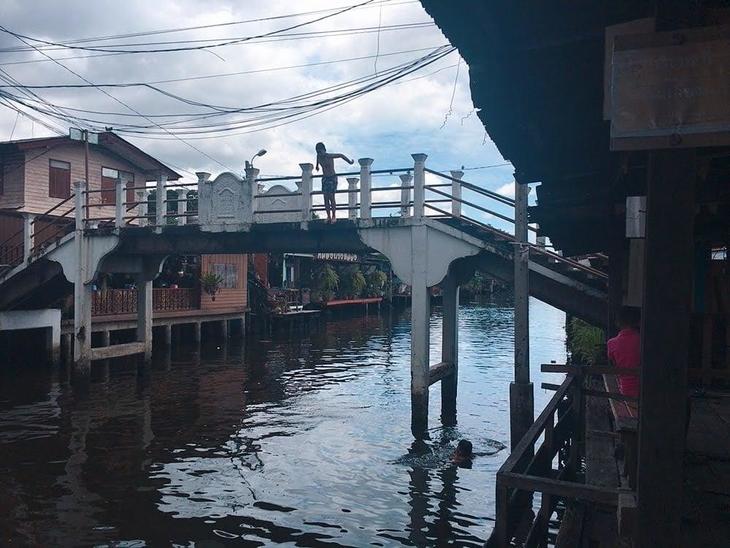 運河沿いには高床式の木造家屋などの古民家や商店がならび、そこでは水遊びをする子供、昼寝をする人、洗濯物を干す人、なにもせずボーっとする人、お茶を飲みながらご近所とおしゃべりする人など、生活感あふれる地元民の暮らしを垣間見ることができます。
