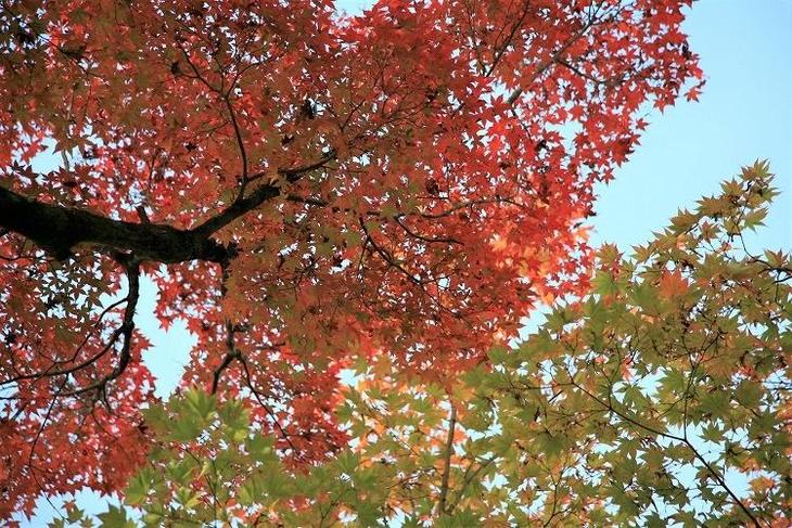 参道から見上げると、色づいたもみじに見入ってしまいます。