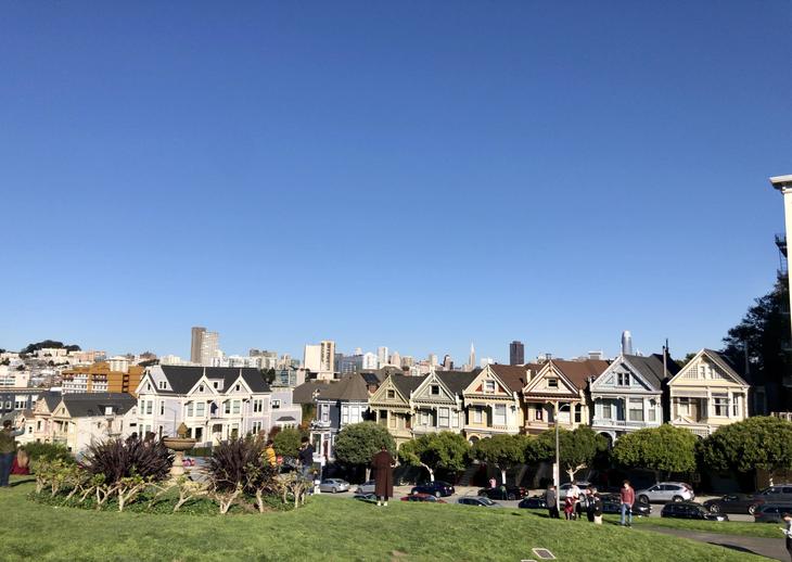 アラモ公園(Alamo Square)に面したビクトリア調民家はフルハウスのオープニングに登場するのでも有名です。古民家の屋根越しに近代的な高層ビルが見えるこの公園には、近くの市民がたくさんピクニックをしていました。写真を撮る観光客はまだ少なめでした。