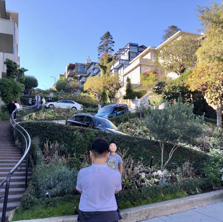 サンフランシスコ観光で外せないロンバードの坂道。通り抜ける車も多かったです。この時期は花の盛りを過ぎているのが少し残念です。