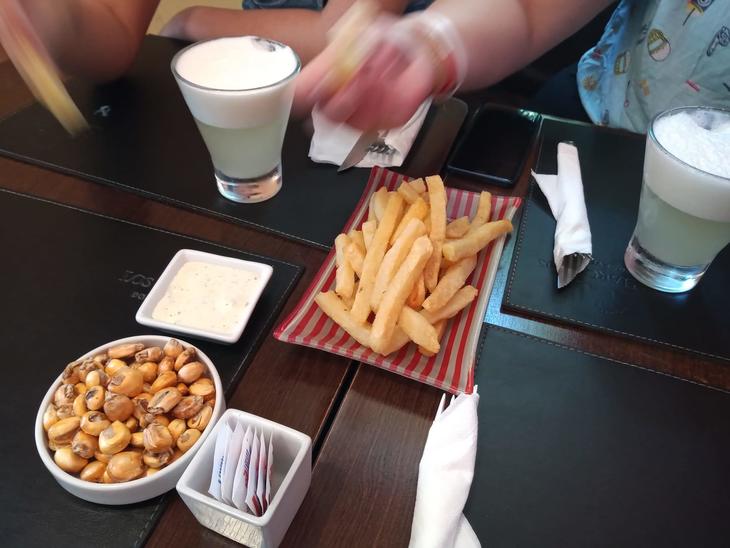 おなかがすいていたのでフライドポテトを頼んだら、ペルー的なトッピングソースが出てきました。これがおいしい。