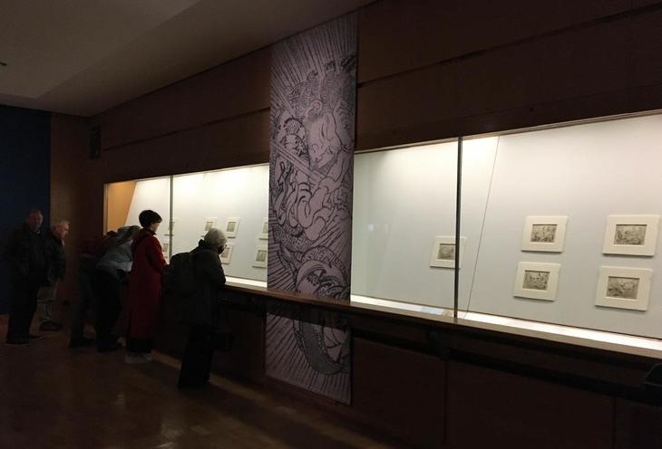 それゆえ、今回の展示品すべてが危うく「幻」になりかけた貴重なものであることが、よくわかりました。感心しているのは同胞の日本人だけでなく、なかには巨大な虫眼鏡を持参し、仲間とあーでもないこーでもないと議論を交わしながら、しきりにガラス越しに小さな挿絵をメガネ越しに覗いている欧米人グループもいました。