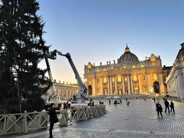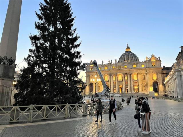 筆者は、このバチカン市国のクリスマスツリーについてはよく勘が働き、特別ニュースを見ていなくても、ふと思い立って今日はバチカンを見に行ってみよう!という日が、なぜか毎年クリスマスツリーが到着して飾り付けをする日に当たっています。的中率がすごいため、モミの木が生きているので、もうそろそろ到着するよ~!おいで~!と呼んでいるのではないかと思うことにしています。今年もまったく日付は知りませんでしたが、ふと思い立ち訪問したその日はバチカン公式の飾り付けの日でした。