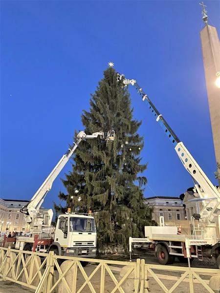 毎年異なる場所よりやって来るモミの木は、今年は北イタリアのトレント自治県の東アルプスにあるドロミティの森から来ました。アルプスを出発したモミの木は、何日もの長旅を経てローマに到着しました。赤モミの木の樹齢は113歳です。