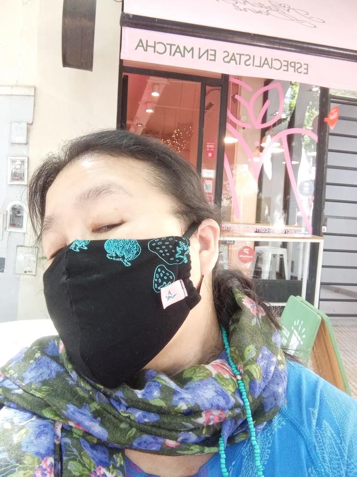 私は新しいマスクを買いました。こちらは折り鶴タグもあり、イチゴに黒とJUANA DE ARCOにしては地味なのもいいかしらと思いました。厚めなので重厚です。これからファッションとアートの町、パレルモ散歩は続きます。