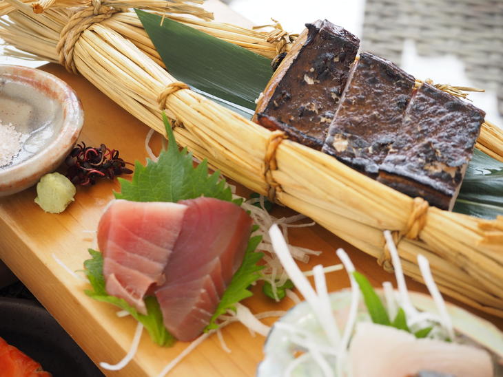 焼き上がったばかりの鰆の藁焼きからは香ばしい炭の香りが鼻孔をくすぐります。