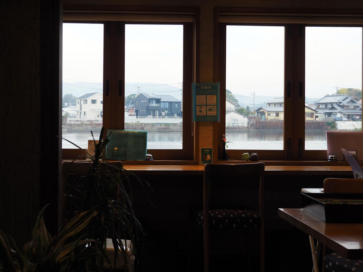 店内の溜川に面した窓際にはカウンター席があります。