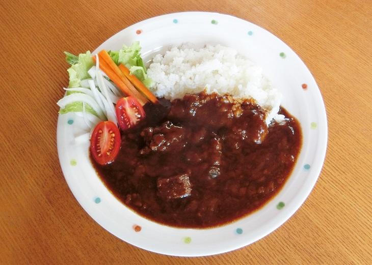 山梨の澄んだ空気と美しい水に育まれ、丹念に育てられた黒毛和種肥育牛。その中でも肉質等級の5段階中「4等級以上」に格付けされた優れた甲州牛を使用。「甲州味噌」と山梨県西八代地区特産の「大塚にんじん」のピューレを絶妙に調和させた濃厚な旨味のこだわりカレーだそうです。