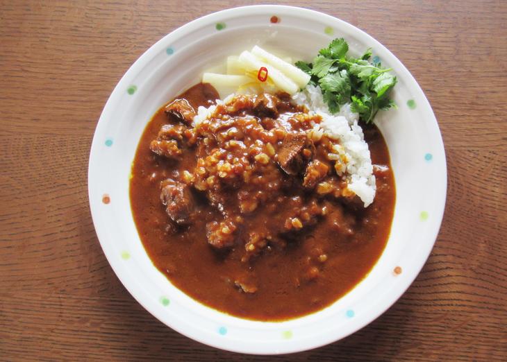 うわ~スパイシー! それもそのはず。20種類ものスパイスが老舗ならではの経験と技で配合されているんですものね。それなのに尖ったところがまったくなくて、玉葱の甘みでしょうか。やわらかな甘みを感じます。辛さはマイルドな中辛でした。ジューシーな富士山麓牛の豊かな味わいと、すっきりとした風味。とってもおいしいです。