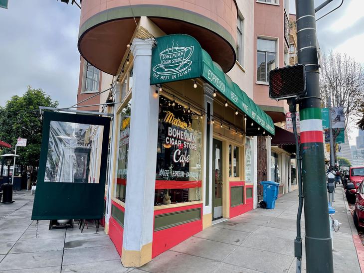 マリオ・ボヘミアン・シガーストアは、コロンバス通りとユニオン通りの角、ワシントンスクエアが目の前。いつも信号待ちで気を取られているので、まったくスルーしていたお店です。三角形で端っこは、"すみっコぐらし"的カフェかもしれませんね。近いうちにすみっコの席を狙ってみます。