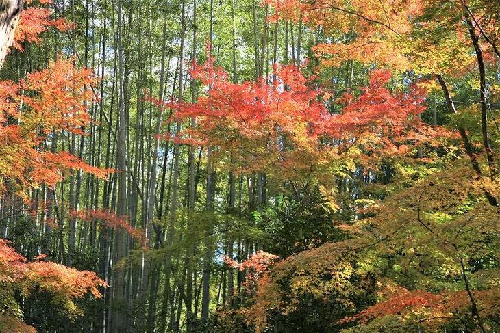 色づいたもみじと竹林の世界に、ただただ見入ってしまいます。