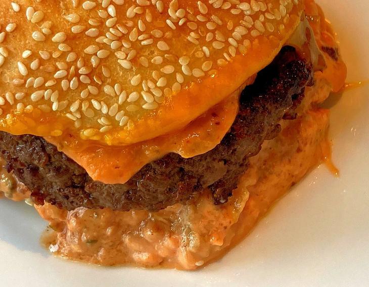フランス人の夫はハンバーガー。ソースはフランスらしく繊細で、肉のおいしさが味わえるハンバーガーです。
