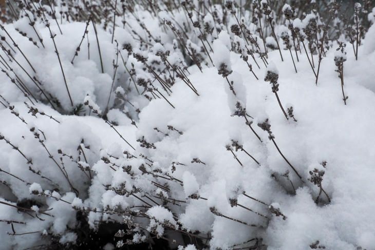 刈り取られずに残っていたラベンダーにも雪が積もっています。