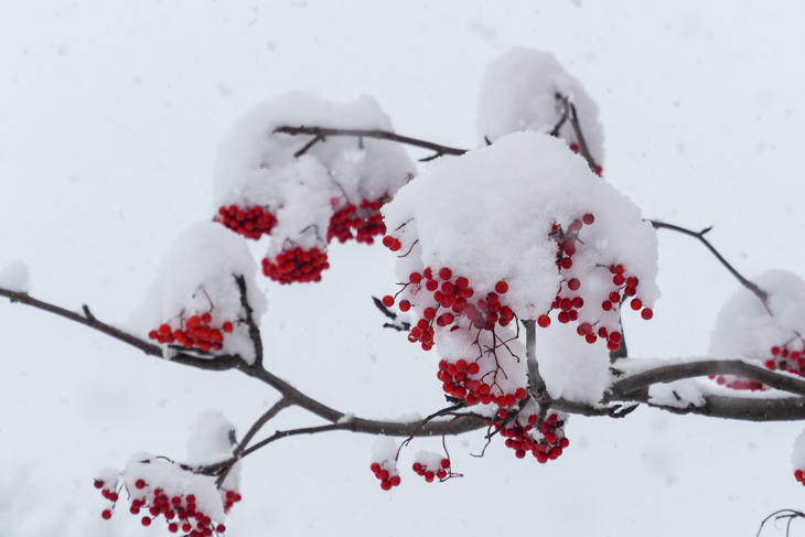 このため、たわわになる真っ赤な実にふわふわの雪帽子がのっている光景を見るなら、この時期が一番きれいです。