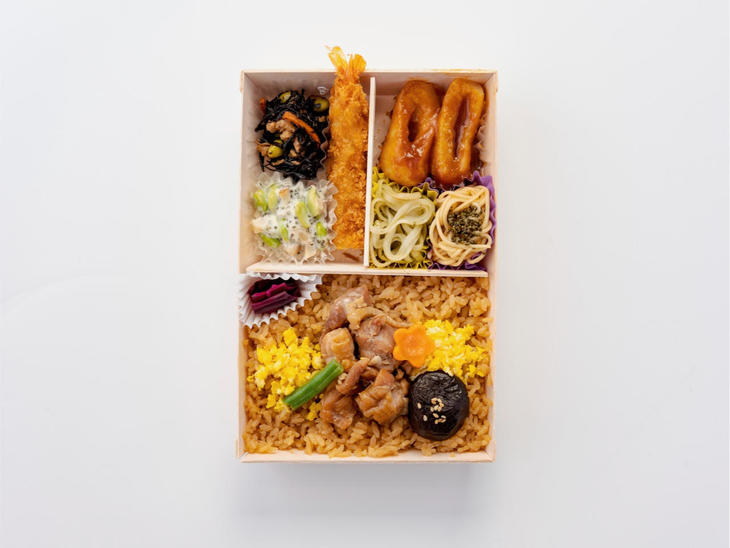 「鶏めし弁当」は花善の看板商品。あきたこまちを、しょう油と砂糖とお酒で炊き込んだ鶏めしを存分に堪能できます。「秋田弁当」は鶏めしも楽しみつつ、他の秋田名物も楽しめる内容。きりたんぽ、いぶりがっこ、稲庭うどんなど、秋田のご当地グルメを少しずつつまめる内容になっています。