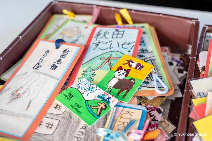 花善の本社がある秋田県大館市の有浦小学校と共同で、地域の特産品やスポット、魅力を描いたイラスト付きの手作りキーホルダーを作り、お弁当を買ってくれたお客さんに配布されています。大館市東中学校とは、駅弁に合うお茶の開発を行ったり、秋田県立大館国際情報学院高校は、秋田弁当に添えるお品書きの制作を担当しました。