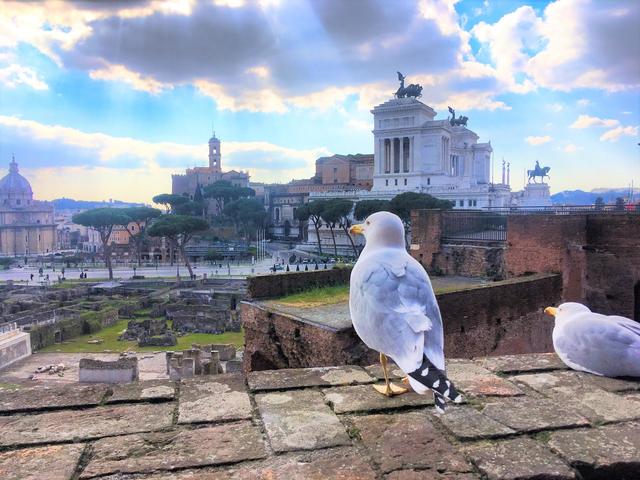フォーリ・インペリアーリ通りの遺跡を見下ろすカモメさんです。