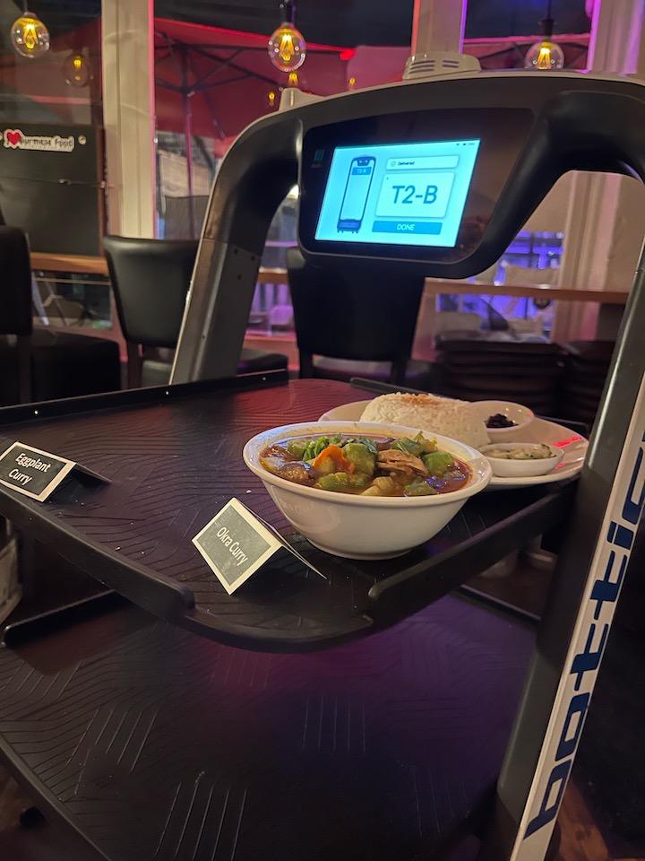 メニューは、伝統的なビルマ料理にモダンなツイストを……とのことです。季節のおすすめのオクラのカレーとなすのカレーを頼んでみましたが、とってもおいしかったです。