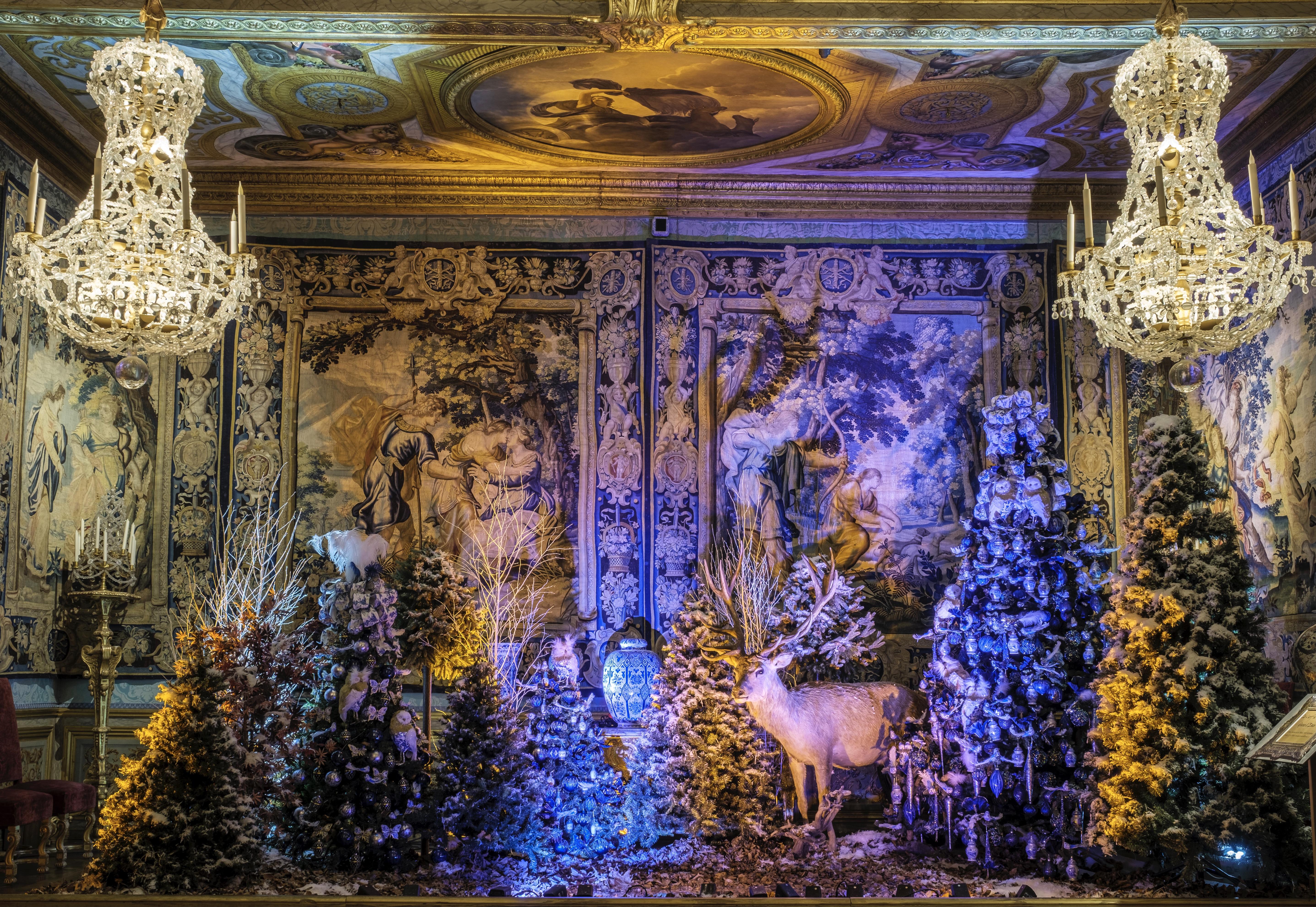 ベルサイユ宮殿と同じ、ルノートルによるフランス式庭園にはたくさんのクリスマスツリーが飾られています。