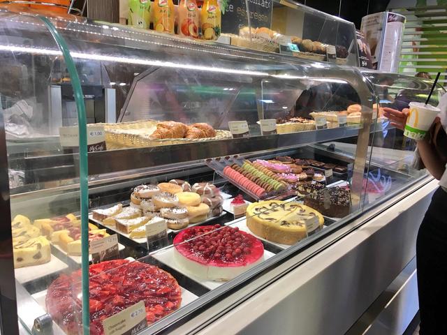 ↑ こちらのマクドナルドでは、夏はジュースなどもたくさん用意されていました。コーヒーやスイーツは、店内で普通に座って食べる以外に、テイクアウトをすることもできます。