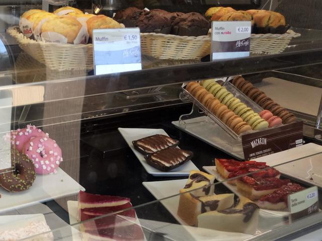 イタリアのマクドナルドで観光客さんが驚くことのひとつは、売られているスイーツの多さです! マクドナルドに入ると、マックカフェというコーナーがあります。それはイタリアのバールをイメージしたもので、早朝から営業していて、朝ごはんにも仕事の合間の休憩にも利用する人が見られます。