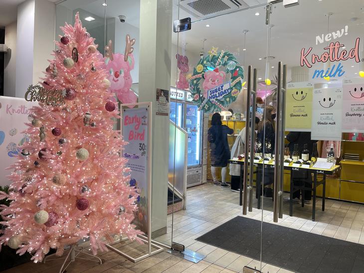 お店はホワイトがベースで入口はクリスマスの雰囲気がわかいらしかったです!