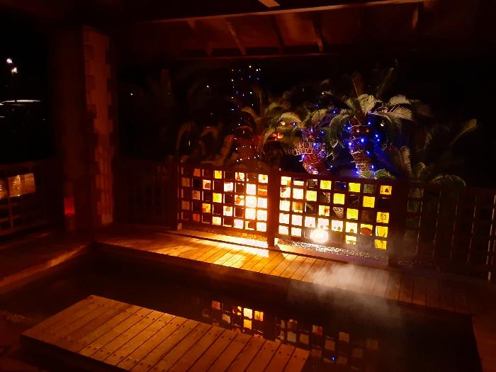 はわい温泉の中心にある「はわい温泉広場」でクリスマスツリーを中心としたイルミネーション点灯しています。