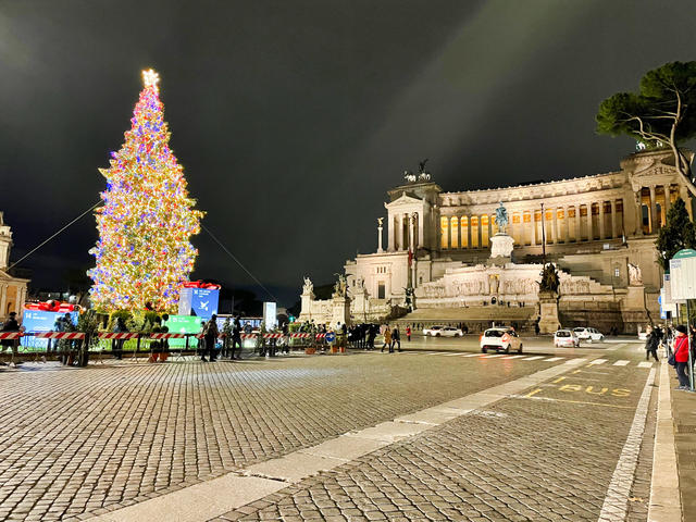 今回は、ローマ観光をする際には必ず目にする大きなヴェネツィア広場のクリスマスツリーのイルミネーションをお届けしました。今年は、きらきらと煌めきを放つカラフルな美しいデコレーションでした。職人さんに筆者のうちのドアもお願いしたいくらいです。次回は、また違うローマのすてきなクリスマスのイルミネーションのスポットを紹介します!