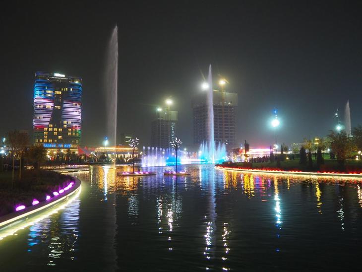 2000年以上の歴史を持つ古都でありながら、ますます発展が加速している現代都市という面も持つ町、タシケント。現在町は空前の建築ラッシュで、どこに行っても高いビルやマンションを建設している様子が見られます。そのタシケントの今を感じることができる場所のひとつが、広大な公園を中心にヒルトンホテルやプラネタリウム、レストラン、高層マンションなどが建ち並ぶ複合施設タシケントシティ。きれいに整備された公園で毎晩華麗な噴水ショーが催され、現地の見物客でにぎわっています。また独立記念日やクリスマス、年越しなど祝祭日に応じたイベントも開催。ここに行けば、歴史あふれるシルクロードの国というイメージとは違う近未来的な一面を感じることができるでしょう。