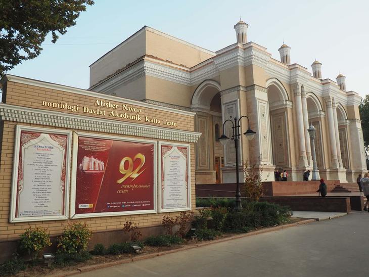 ナヴォイ劇場(正式名称:アリシェル・ナヴォイ記念ウズベキスタン国立アカデミー大劇場)は、タシケント市内中心部に位置する市内最大級のオペラハウスです。ウズベキスタンの英雄とされている文学者、アリシェール・ナヴォイにちなんで名付けられました。