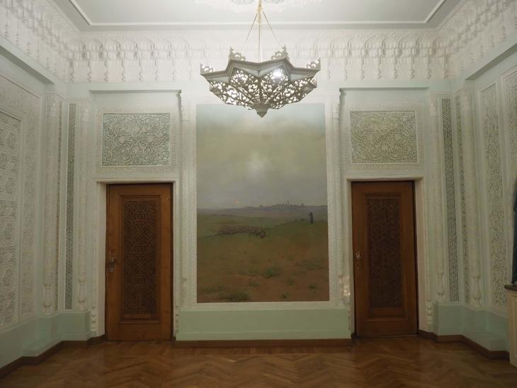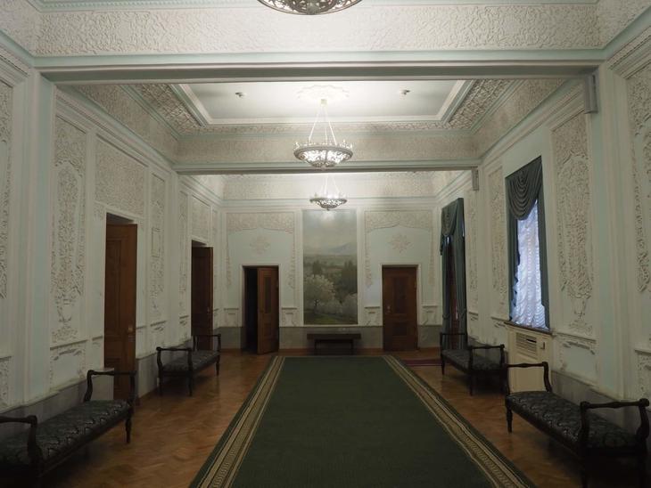 必見なのが、それぞれタシケント、サマルカンド、ブハラ、ホラズム、フェルガナ、テルメズの国内6地域を表しているという6つの休憩スペース。趣の異なる繊細な装飾が施され、部屋の奥には各地域の風景を描いた絵画が飾られています。このように西洋建築の中にウズベキスタン的要素が見事に融合しているのが、この劇場の特徴なのです。