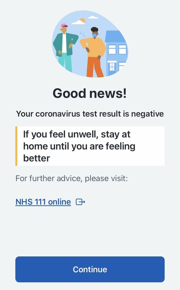 NHSのCOVID-19アプリに登録して、自主隔離や追跡調査に協力してほしいといった趣旨が書かれていて、今回受けたPCR検査の結果を踏まえた自主隔離の案内も確認できるとのこと。