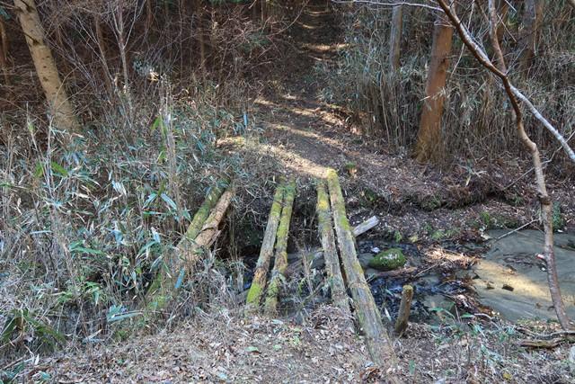 沢に架かる丸太の橋を渡ります。
