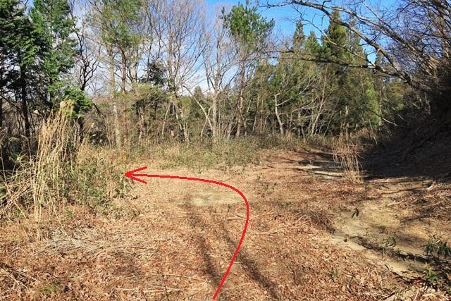 右奥に続く道状の段差ではなく、斜面を若干左上方側へ向かうよう心掛けたいポイントです。