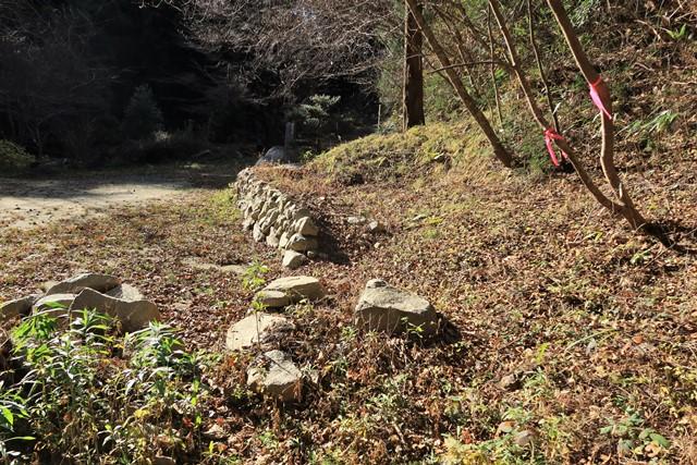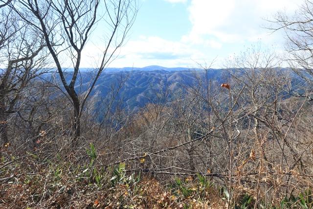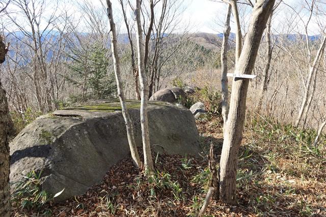 手前に弁当石。樹木の先には往生山が見えています。