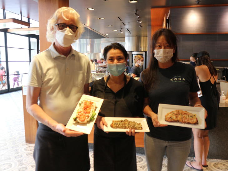▲左:ミケル・スアさん 中:ベリンダ・レオンさん 右:ジャクリーン・スーターさん(コナコーヒー・パーべイヤーズのオーナー)