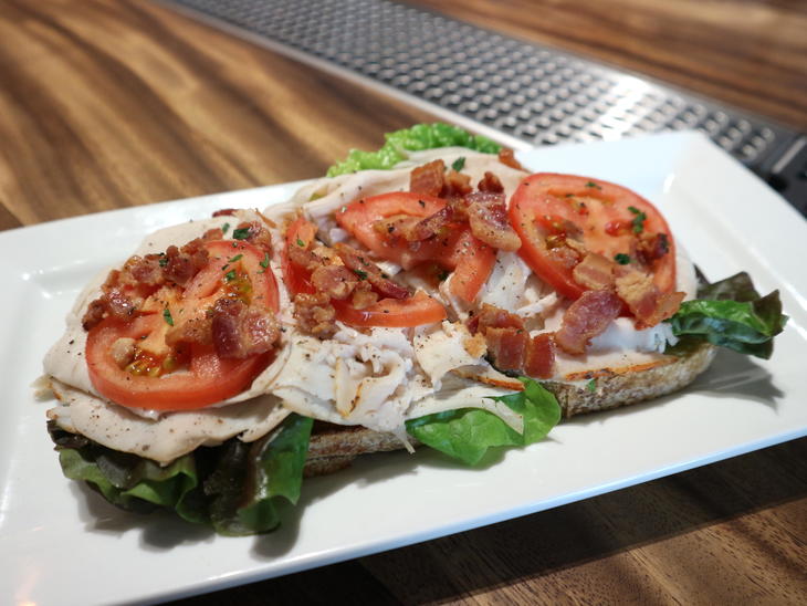 ターキーBLTは、ローストしたターキー、小さく切ってカリカリに焼いたベーコン、そしてレタスとトマト。アボカドマヨネーズがターキーや野菜によく合います。