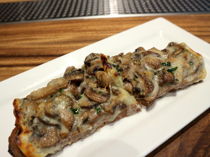 最後はマッシュルームのオープンサンドイッチ。マッシュルームのラグー(煮込み)と飴色になるまで炒めた玉ねぎをのせたサワードウブレッドをグリュイエールチーズとベシャメルソースと一緒にオーブンで焼き上げます。ワインにも合いそうな美味しさでした。