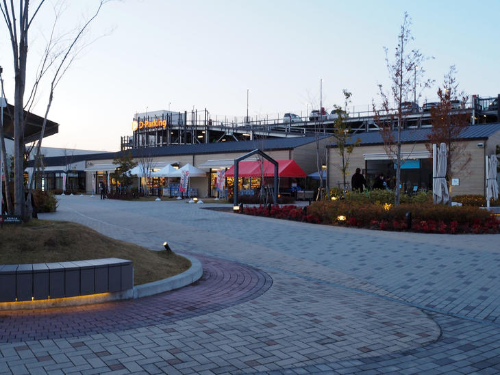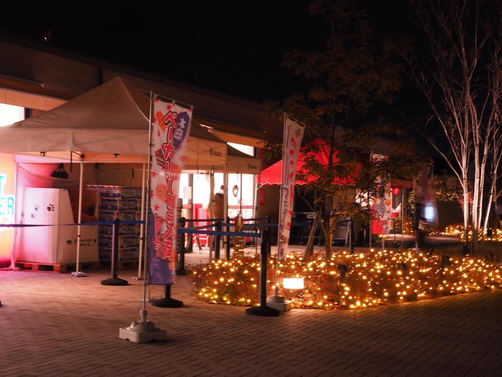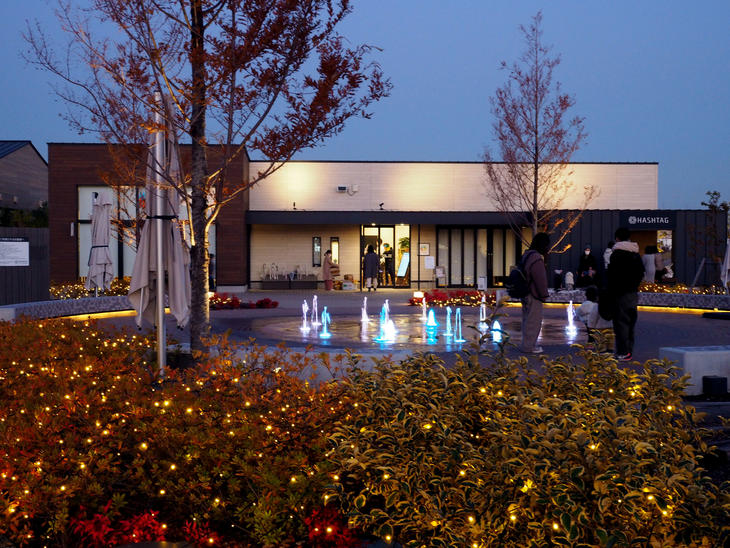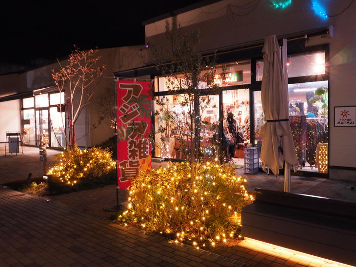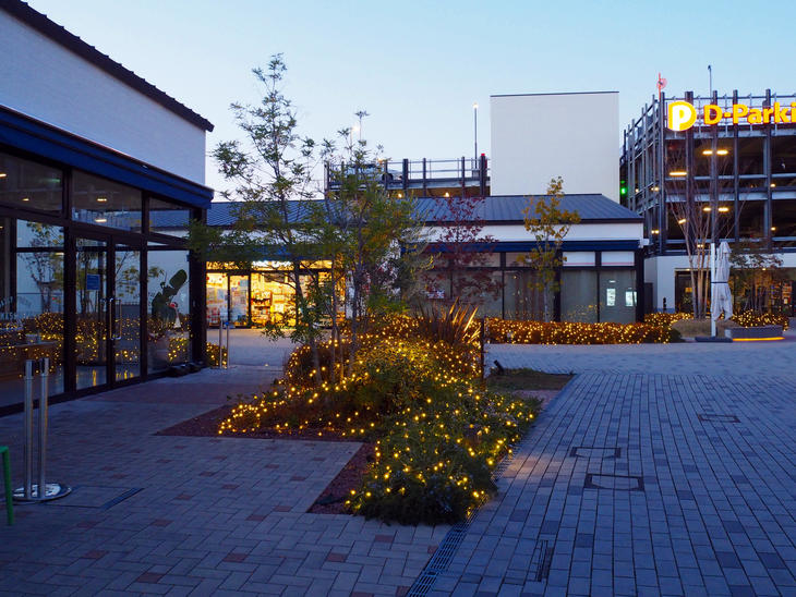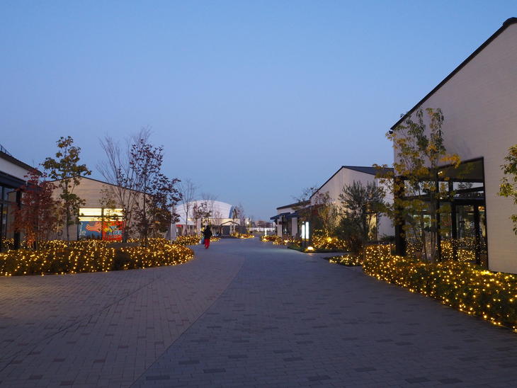 薄暗くなり始めたのでショッピングゾーンはイルミネーションのライトがつき始めました。現在、2月下旬までブランチイルミネーションのが行われており、日没後から華やかにライトアップされます。