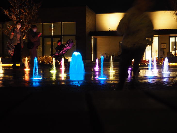 一定の時間になるとキンダーガーデンの噴水もライトアップされます。