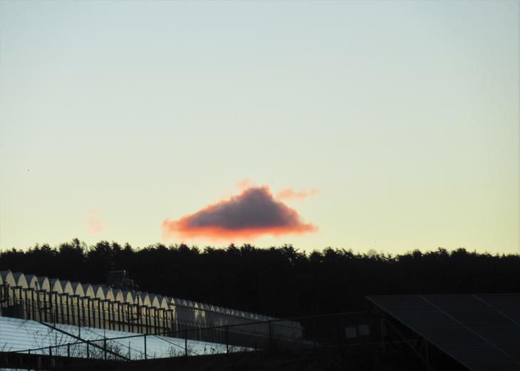富士山の東側には、赤く染まった富士山似の雲が、朝日の出る位置を示していました。